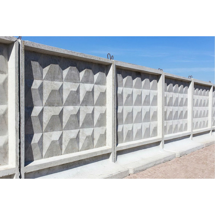 Бетонный забор Плита забора ЖБИ ПО-13 изготавливают из бетона высокого качества и армируют с помощью сварных сеток из высококачественной стали. За счет такого сочетания панельное ограждение способно выдерживать большие нагрузки на растяжение и сжатие. Марки бетона для ограждений обеспечивают хорошую водонепроницаемость и морозоустойчивость.